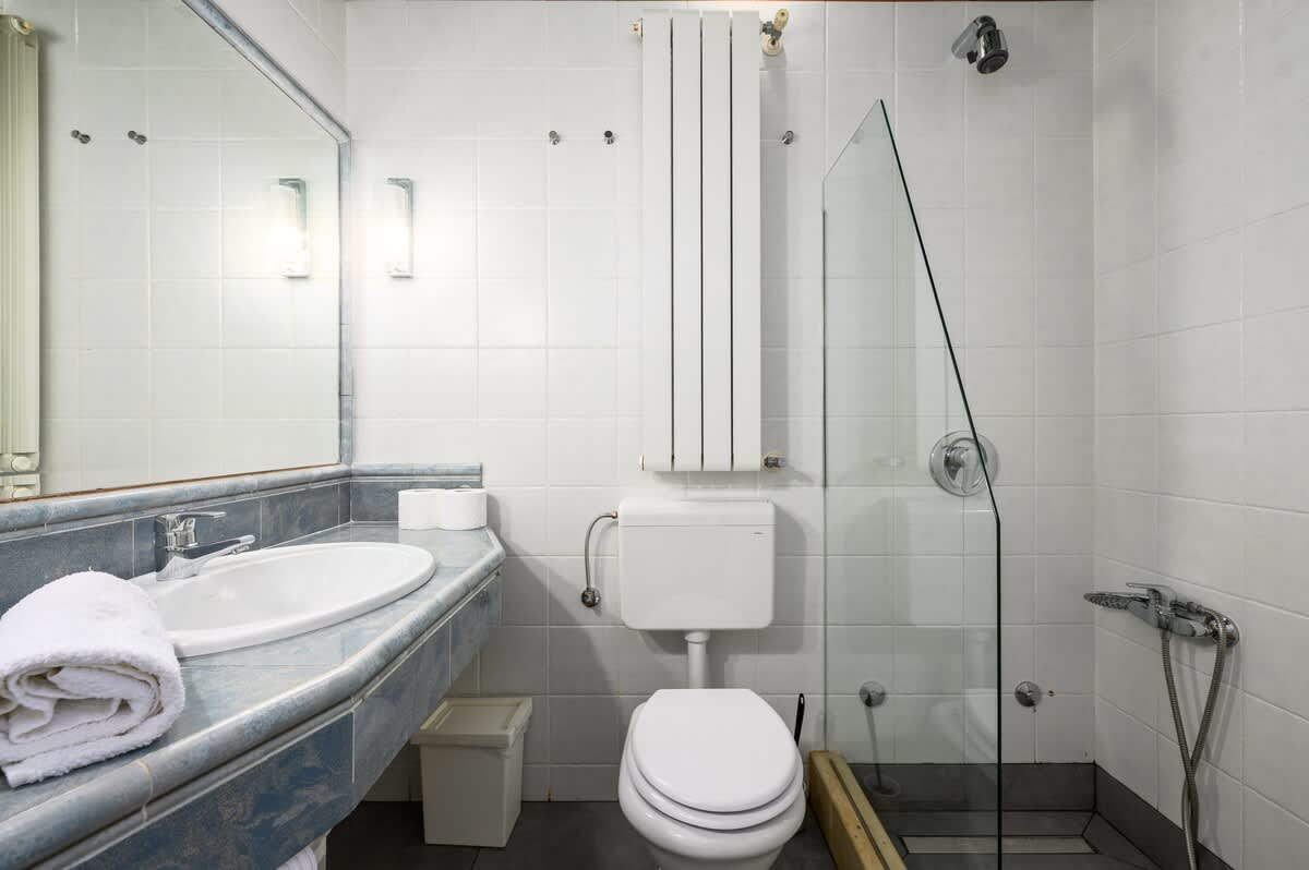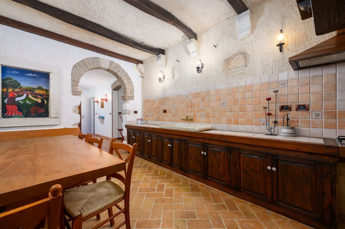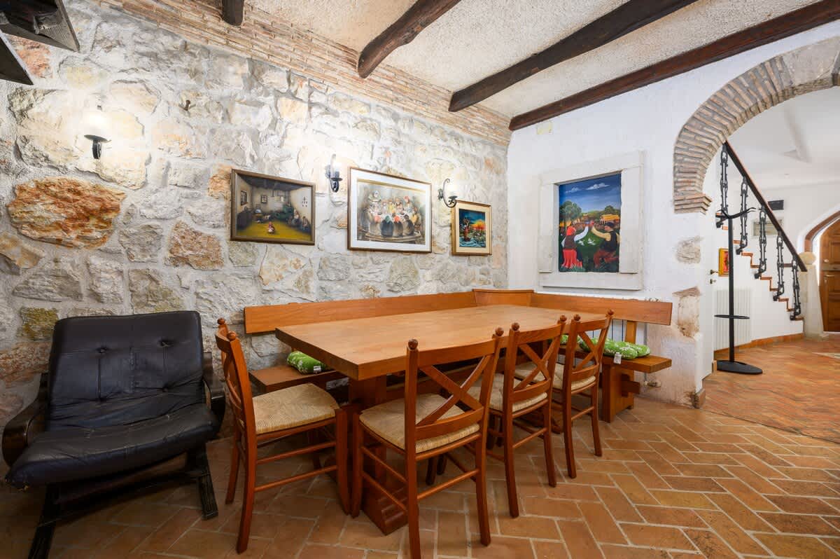 On the ground floor, you’ll find two comfortable bedrooms, each with a double bed and a private bathroom with shower. A cozy tavern-style dining room with a fireplace and a small kitchen invites you to enjoy intimate dinners together, while a separate guest toilet adds convenience.
