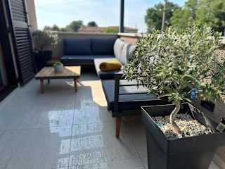 It can accommodate 2 adults and 1 child. It consists of a spacious living, dining and kitchen area. The living area takes to the large covered balcony with a sitting area and a table and chairs. The kitchen is fully equipped, modern and high standard.