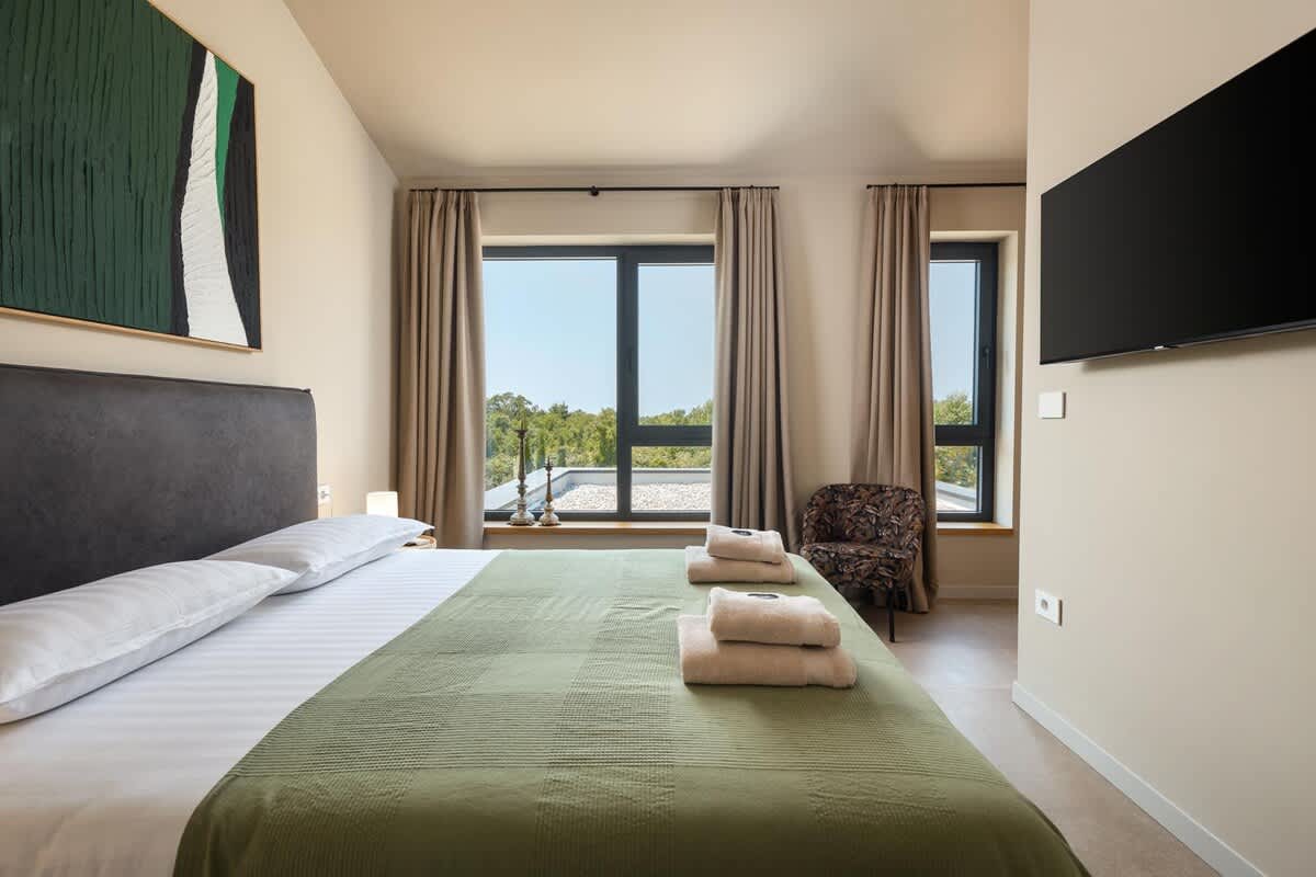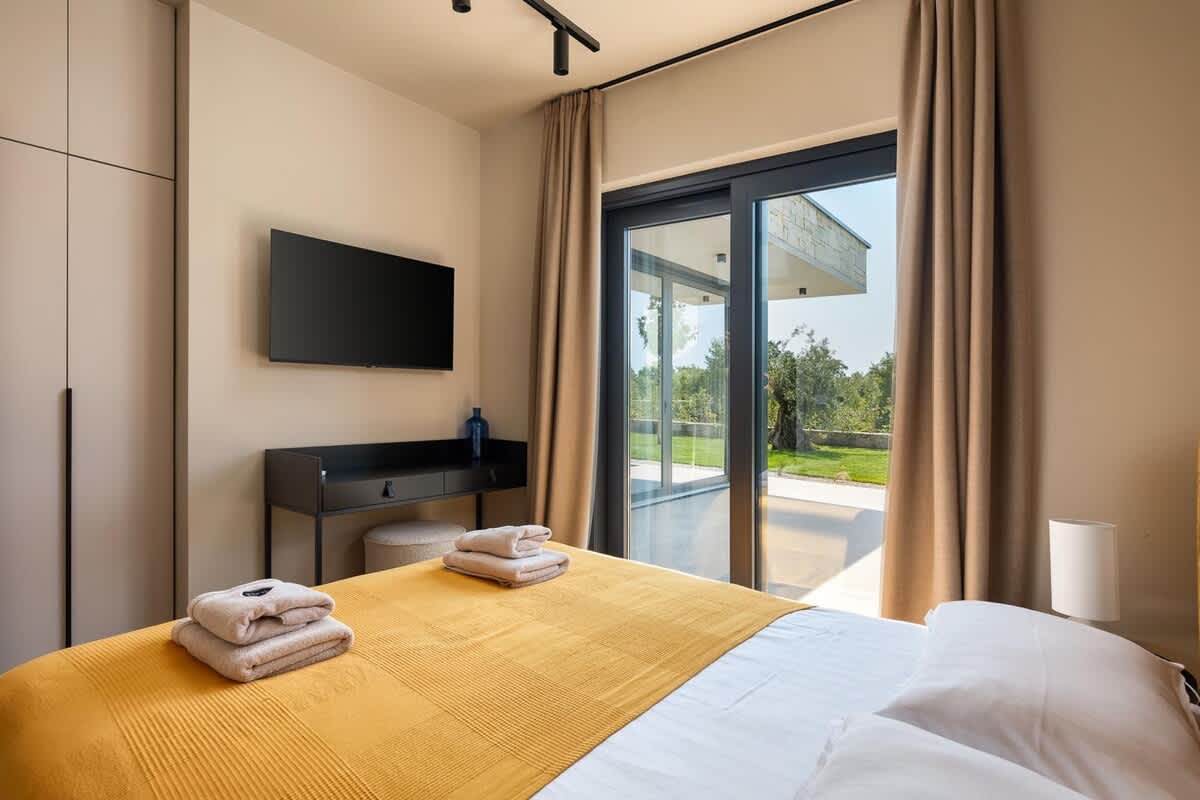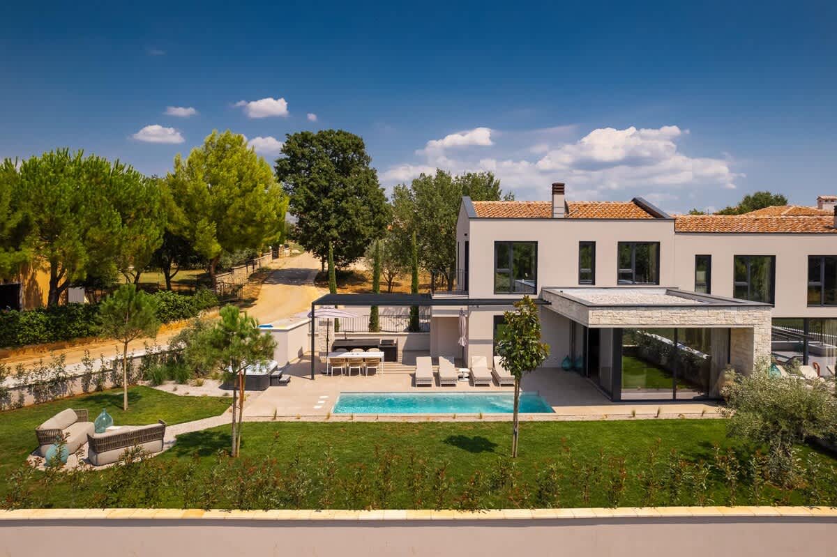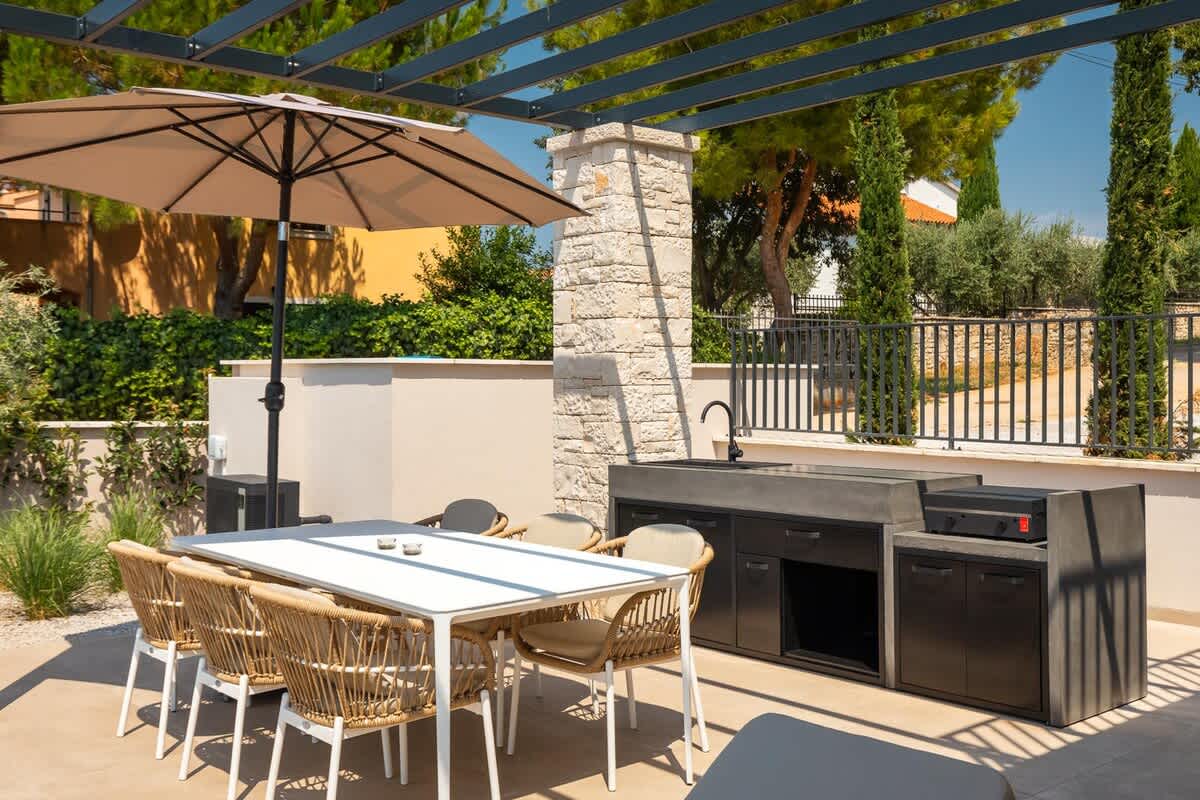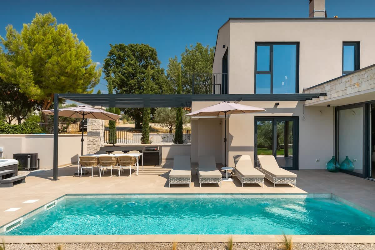 Additional amenities include private parking with electric car charger, modern equipment, and a quiet location, while the sea and the center of Poreč are just a short drive away.