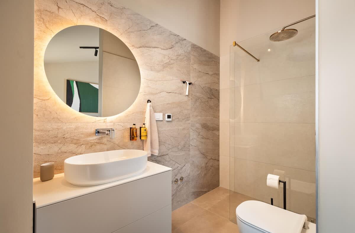 The villa features 3 stylish bedrooms, a bright and contemporary interior, and carefully selected furnishings that create a warm and inviting atmosphere.