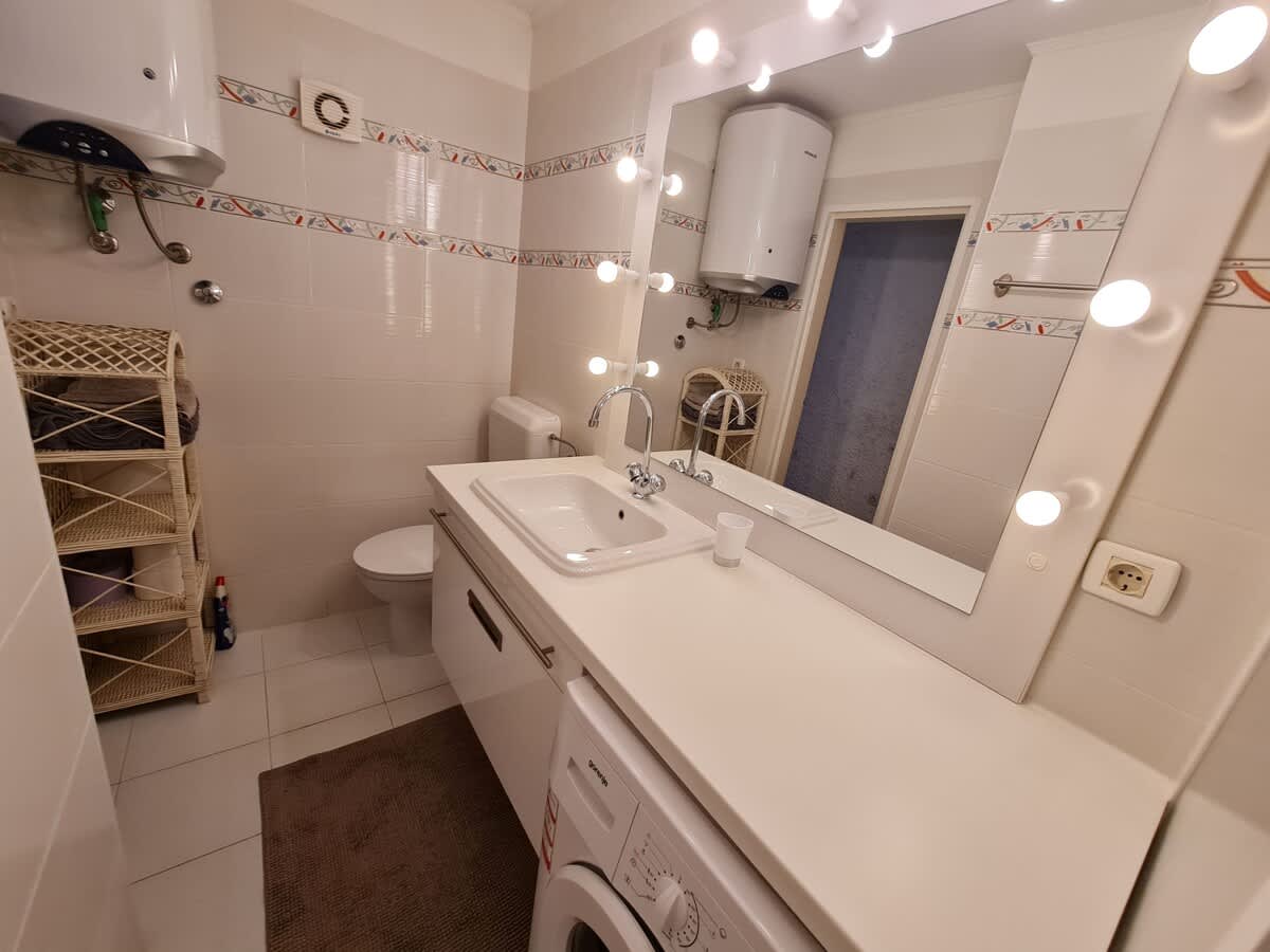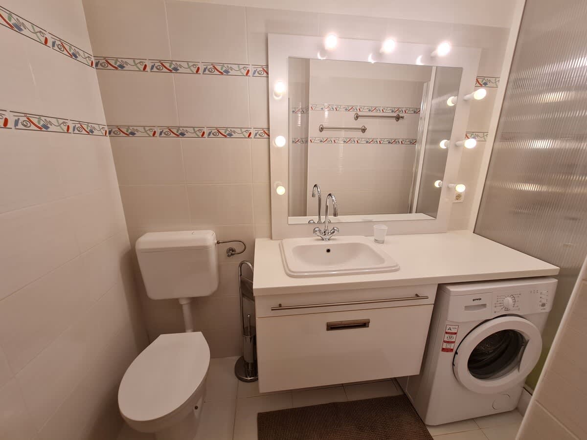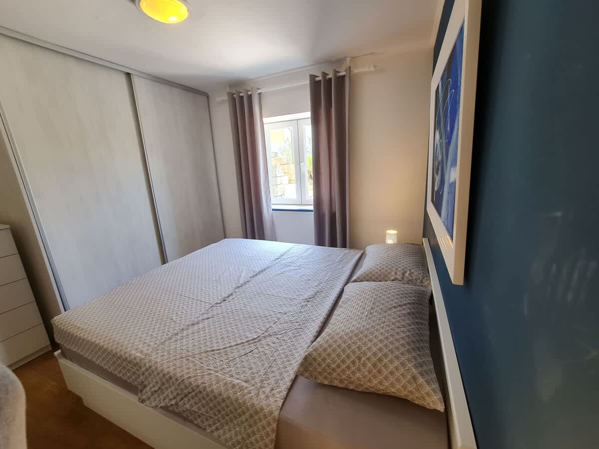 The apartment features a comfortable bedroom with a queen-size bed and an additional single bed, providing ample sleeping space for up to three guests. The well-equipped kitchen, complete with a fridge, washing machine, and essential kitchenware, allows you to prepare delicious meals during your stay. The living area is equipped with a Tv, offering both satellite and local channels for your entertainment.