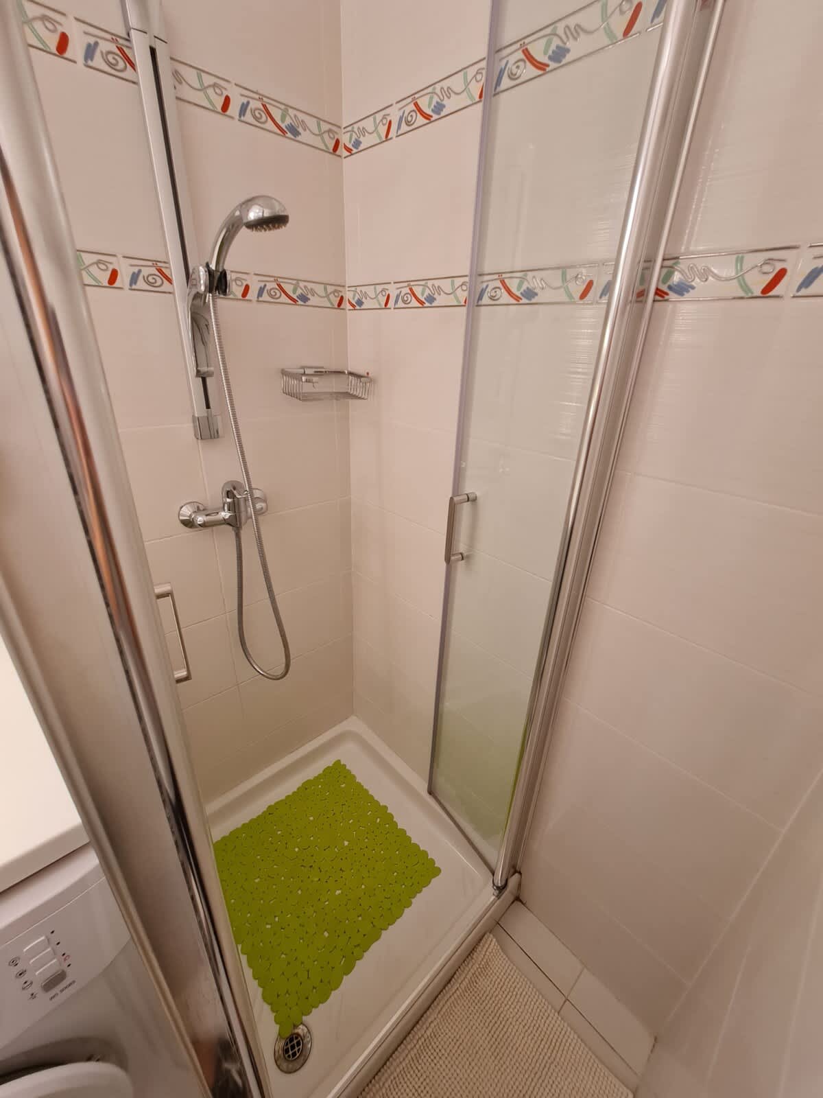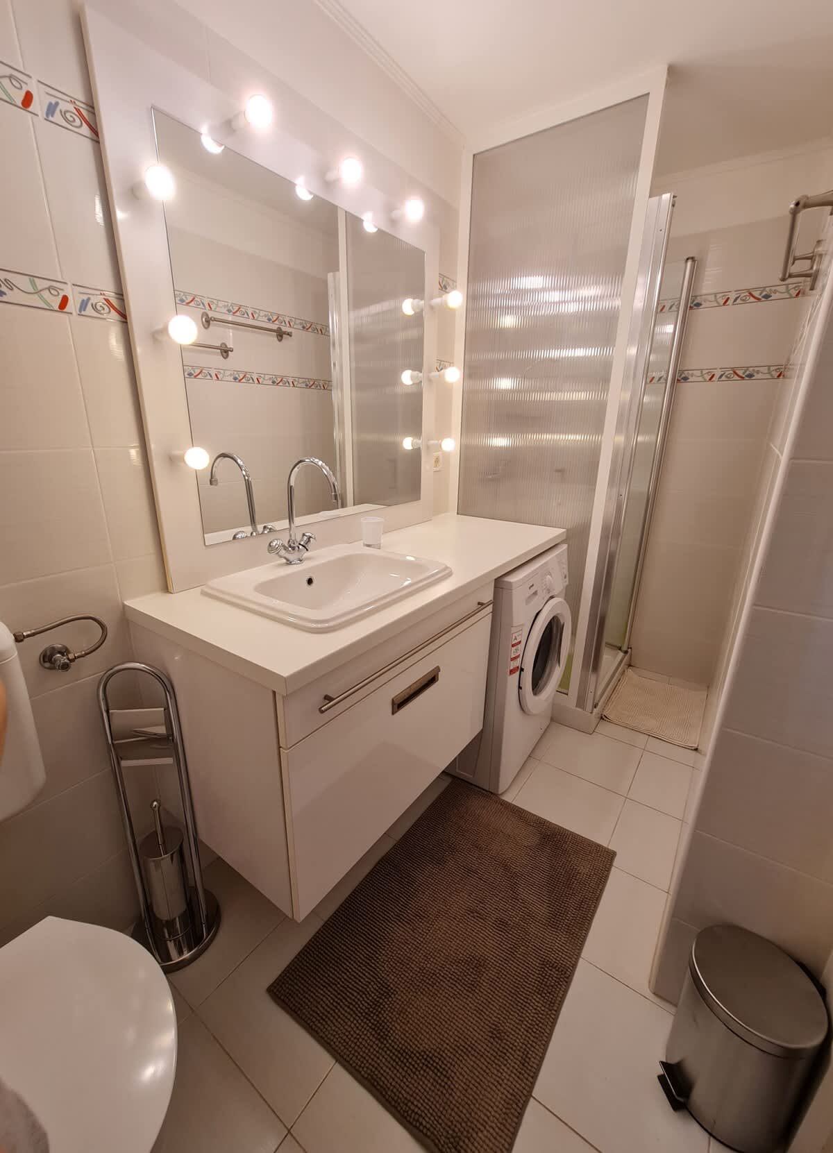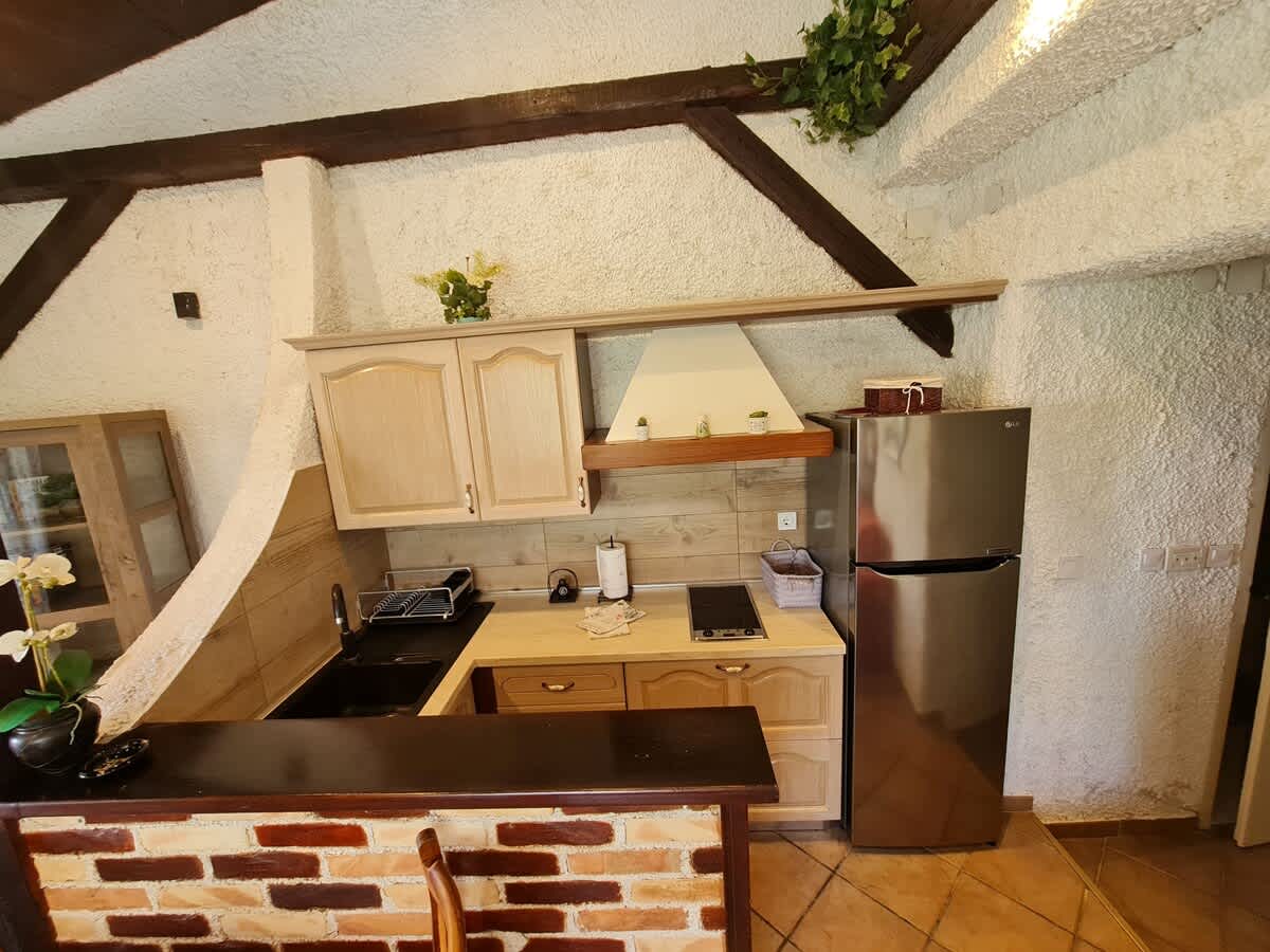 The apartment features a comfortable bedroom with a queen-size bed and an additional single bed, providing ample sleeping space for up to three guests. The well-equipped kitchen, complete with a fridge, washing machine, and essential kitchenware, allows you to prepare delicious meals during your stay. The living area is equipped with a Tv, offering both satellite and local channels for your entertainment.