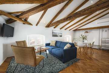 It is situated in historical Porec old town and in the medieval buiding, on the top flor.