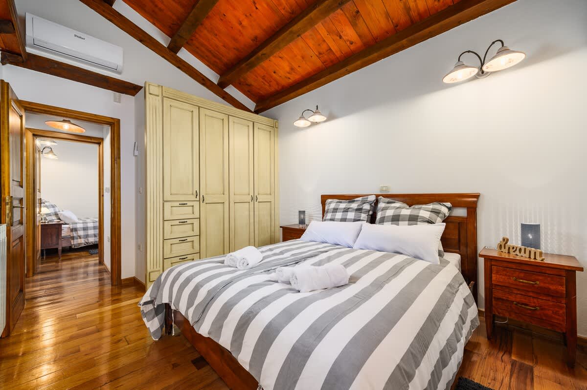Two elegant double bedrooms, each with its own balcony, furnished with a small table and two chairs for morning coffee or evening relaxation.